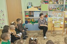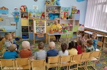 13 октября воспитатель Шарапова Н. М с детьми раннего возраста провела занятие " В гостях у сказки Колобок" с целью создания условия для вовлечения детей в мир сказки "Колобок". Учить детей слушать и понимать сказку в сопровождении показа театра на фланелеграфе. Развивать речевую активность, умение выполнять игровые задания. Воспитывать эмоциональную отзывчивость и чувство сопереживания героям сказки. К деткам приходил сказочный персонаж Зайка. Он с ними поиграл в игру " Зайка серенький сидит".Детки были эмоциональные, с удовольствием были вовлечены в игры.