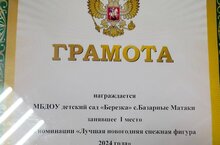 Наш детский сад занял 1 место в номинации «Лучшая новогодняя снежная фигура 2024 года» и была награждена грамотой.