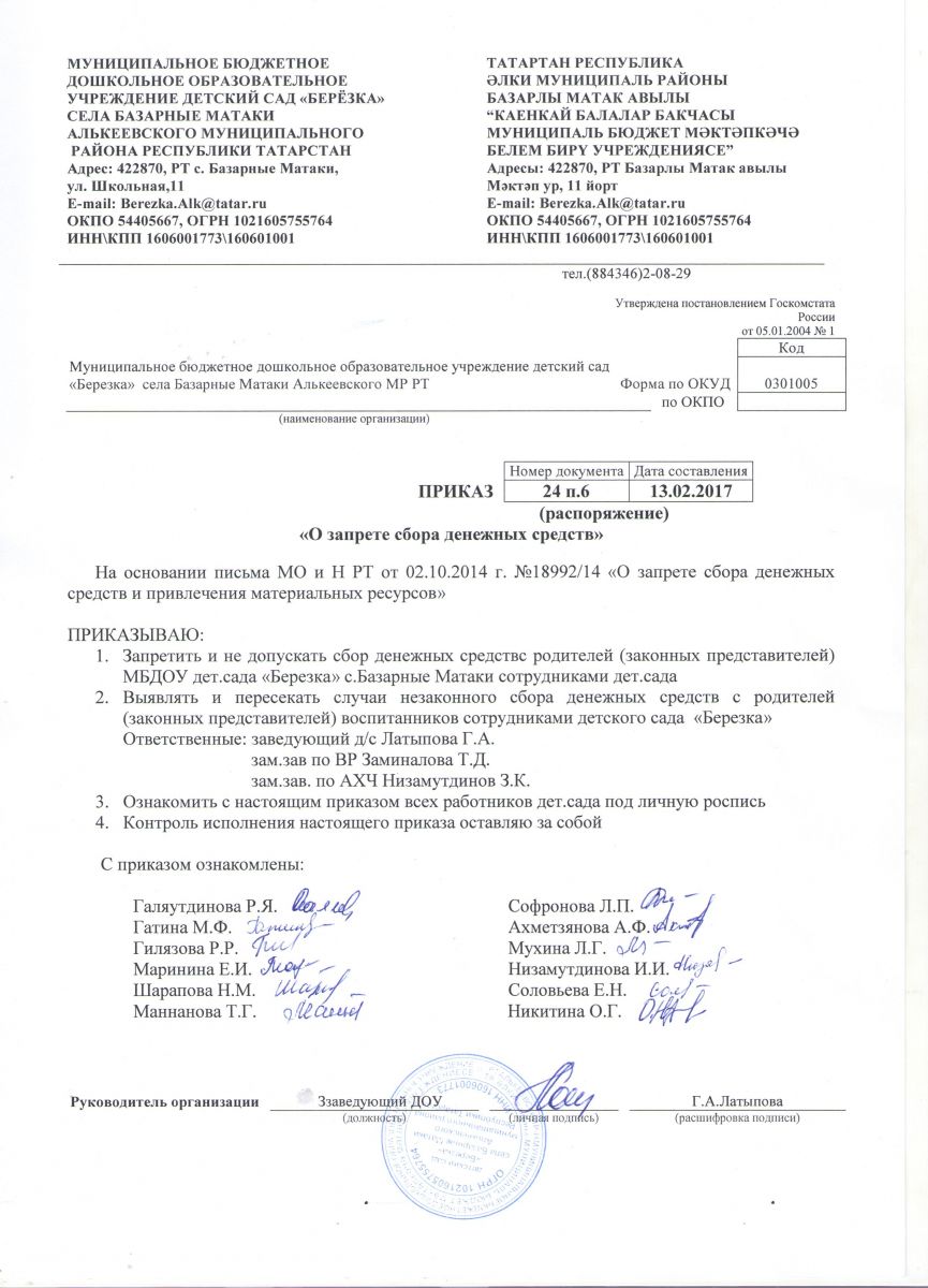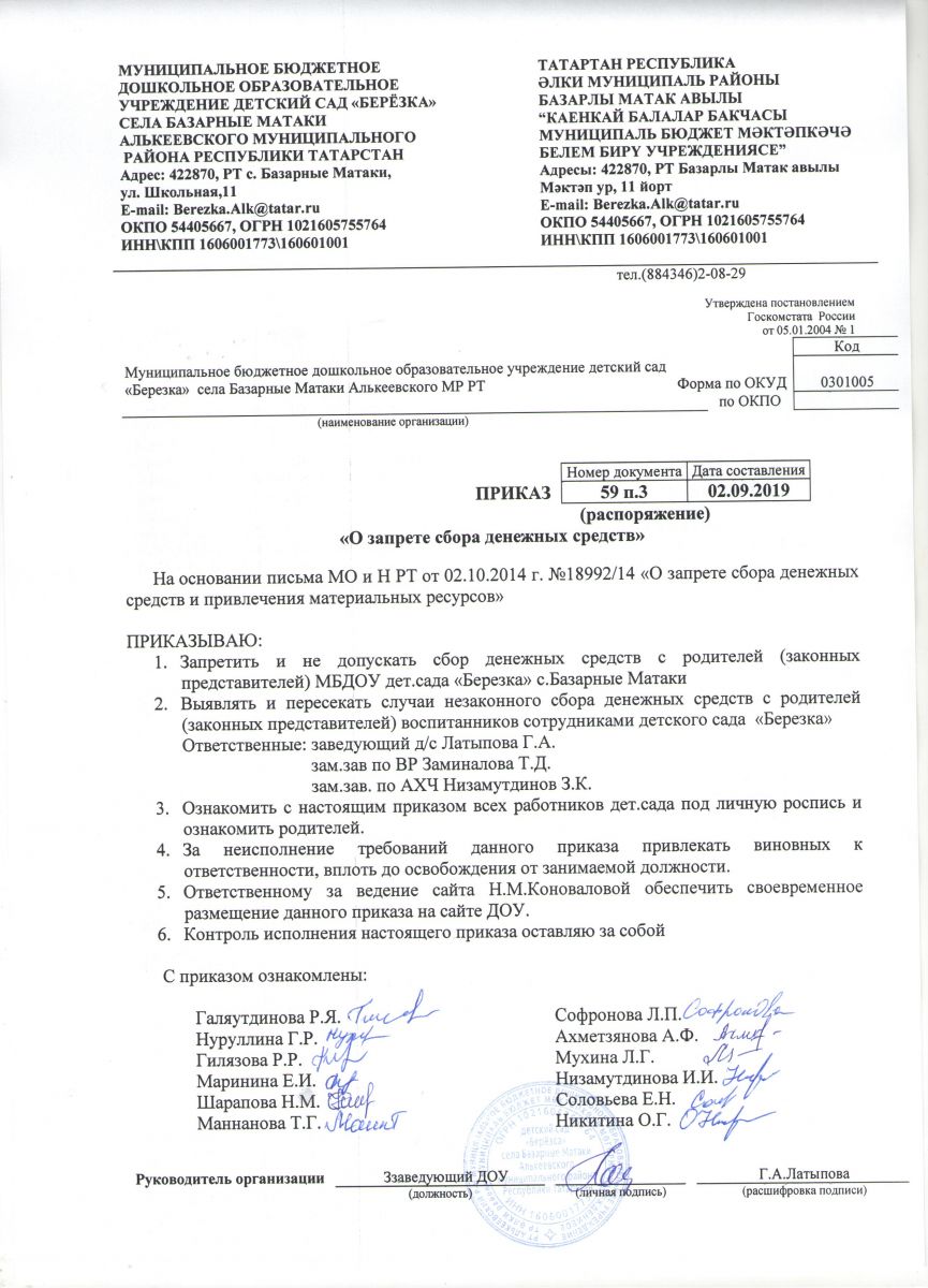 Приказ 59 п_3" О запрете сбора денежных средств".jpeg