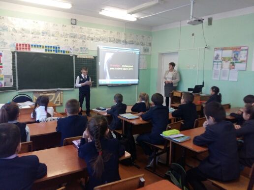 Ежегодно третье воскресенье ноября проходит под знаком Всемирного дня памяти жертв ДТП. Идея обозначить в календаре отдельную дату появилась пятнадцать лет назад в Британии. К 1998 году День памяти был известен далеко за пределами Европы, а в конце 2005 года к инициативе британского благотворительного фонда присоединилась и ООН, в своей резолюции призвавшая все государства мира присоединиться к печальному дню. Россия не осталась в стороне от Всемирного Дня памяти. Сегодня в гимназии прошли классные часы, посвященные Дню памяти жертв ДТП. Отряд ЮИД провел беседы с учащимися начальных классов. Руководитель Залялова Р.Н. Для 7-11 классов классный час подготовила А.Р.Шагалиева, заместитель директора по воспитательной работе. На классном часе выступил Зиганшин Р.Р., инспектор ДПС по Алькеевскому району. Он ознакомил учащихся с основными причинами ДТП, статистикой по Алькеевскому району, Республике Татарстан и России. Дал учащимся практические советы по безопасности на дороге.