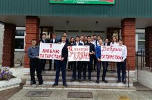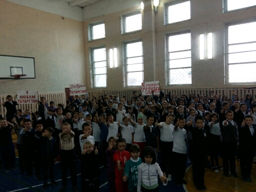 Учащиеся Базарно-Матакской гимназии имени Наби Даули флэшмобом поддержали Казань в голосовании Банка России за право попасть на новые купюры номиналом 200 и 2000 рублей.