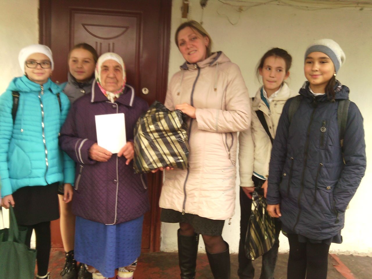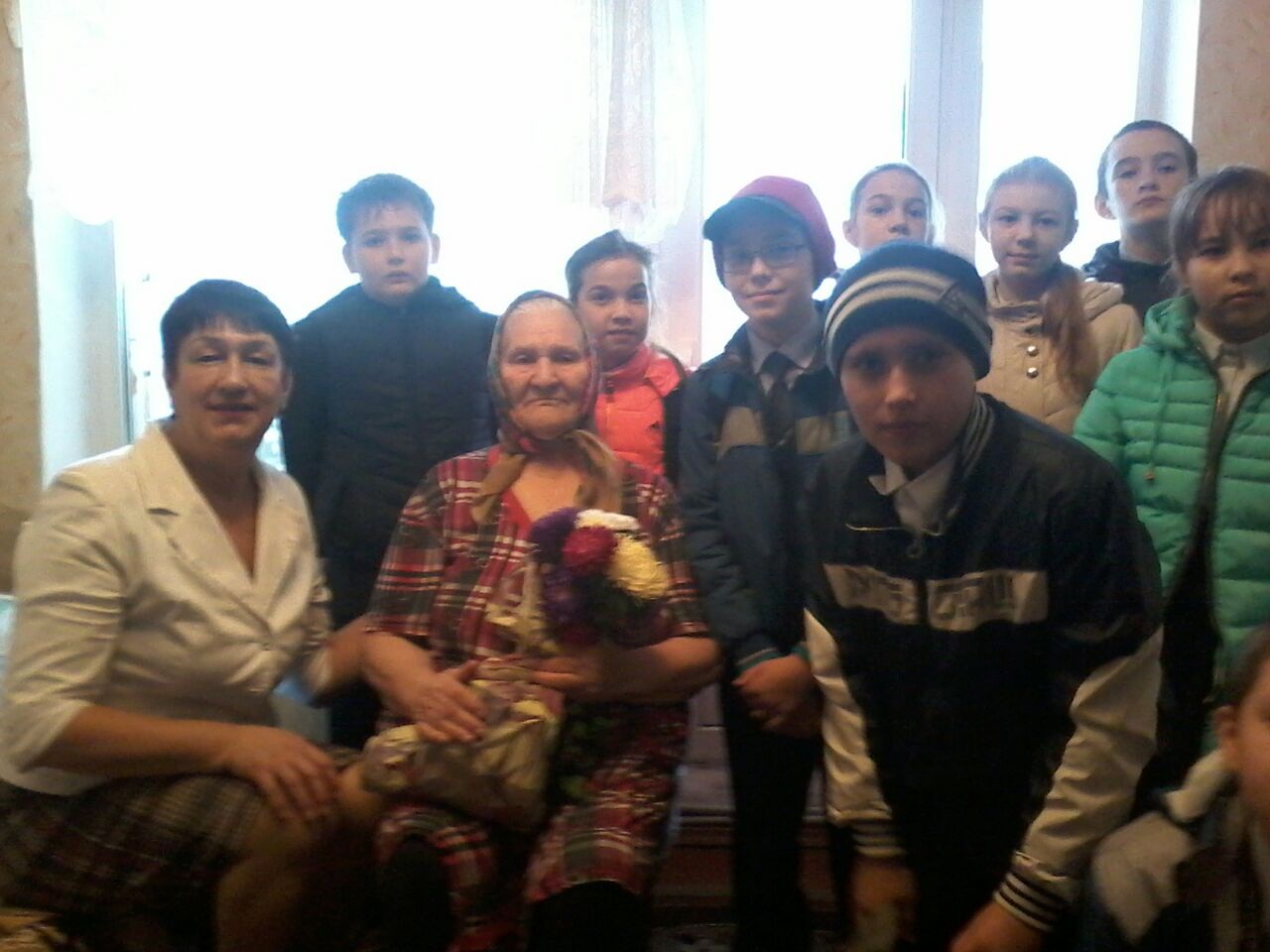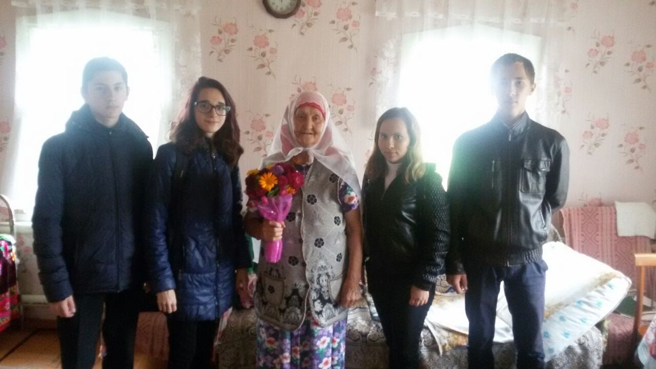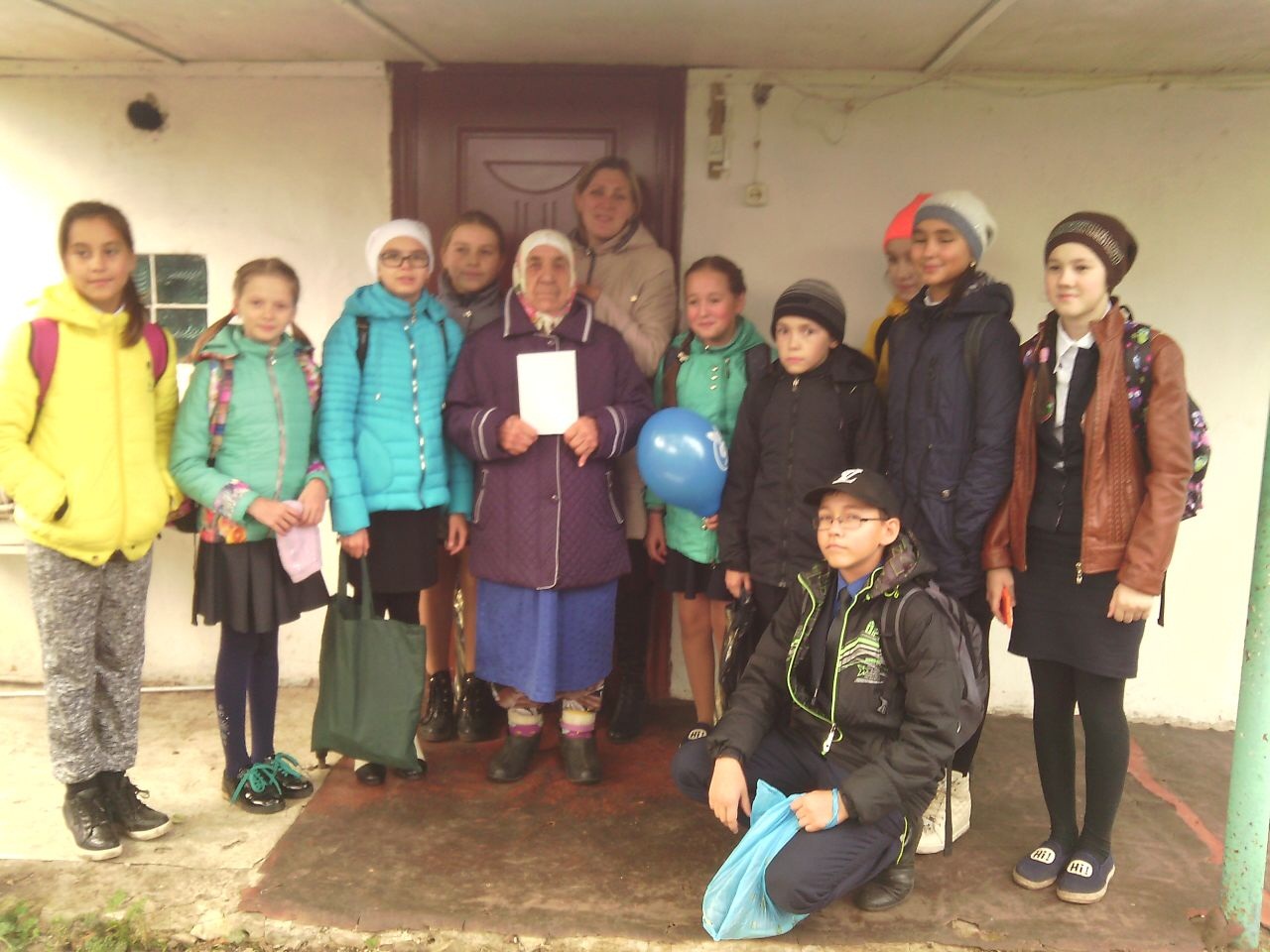 Волонтеры гимназии поздравили своих подшефных ветеранов с днем пожилых. 5 А - Ганину Валентину Гавриловну, 6 - Рахимзянову Зайтуну Гатиновну , 7 А- Сафиуллину Зайтуну, 8 А- Шигаеву Альфию Гариповну, 8 Б- Халиуллину Суембику Ханафиевну, 9-Абдрашитову Галию Хабибулловну, 10 - Гимадееву Зайтуну Вазыйховну, 11 - Хайруллину Гульжихан Бургановну. В Международный день пожилых людей все внимание обращено к людям старшего поколения: бабушкам и дедушкам, возрастным соседям по дому, старшим коллегам по работе.