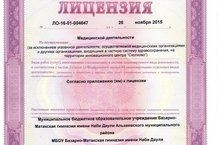 26 ноября 2015 года наша гимназия получила лицензию на осуществление медицинской деятельности. При оказании первичной, в том числе доврачебной, врачебной и специализированной, медико-санитарной помощи организутся и выполняются следующие работы(услуги): при оказании первичной доврачебной медико-санитарной помощи в амбулаторных условиях по вакцинации(проведению профилактических прививок), сестринскому делу в педиатрии; при оказании первичной врачебной медико-санитарной помощи в амбулаторных условиях по :вакцинации (проведению профилактических прививок), организации здравоохранения и общественному здравоохранению, педиатрии.