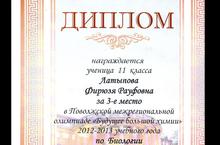 4 учащихся нашей гимназии награждены Дипломами за призовые места в Поволжской межрегиональной олимпиаде "Будущее большой химии" 2012-2013 учебного года.