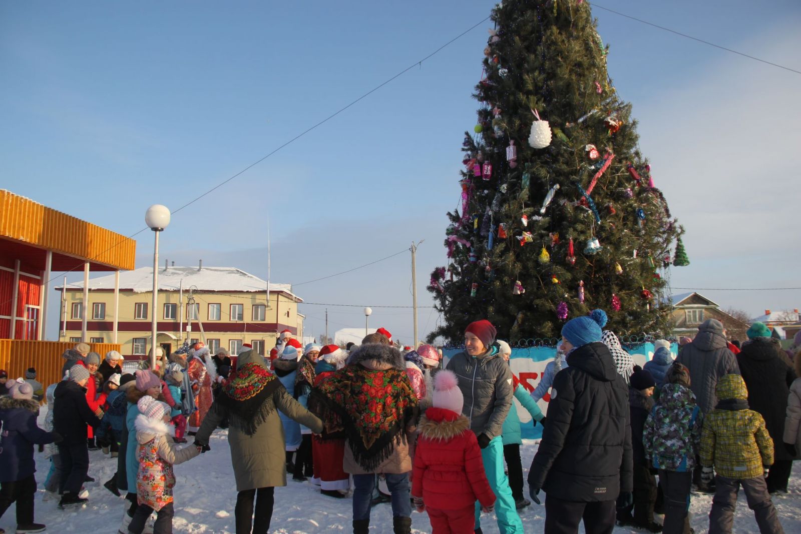 После награждений Деды Морозы и Снегурочки со всеми собравшимися устроили флеш-моб, танцы под веселую музыку. А на сцене выступали работники районного дома культуры.