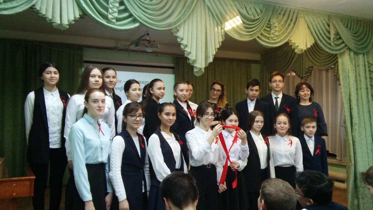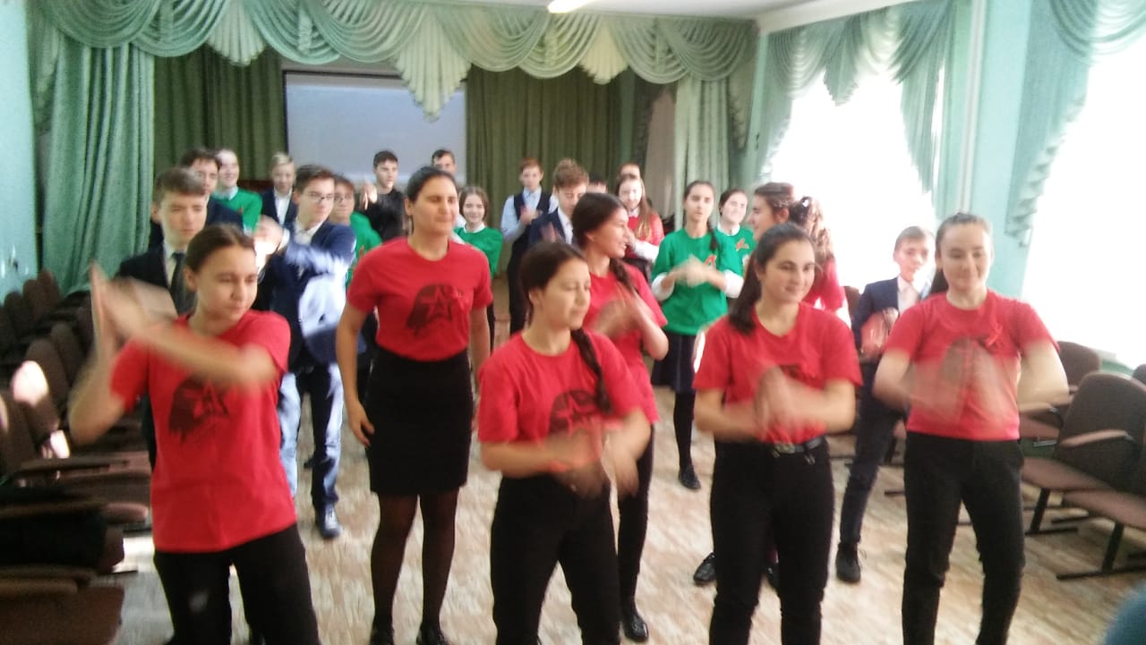 В целях противодействия распространения наркомании и СПИДа в молодежной среде, популяризации знаний о здоровом образе жизни и формировании у учащихся всех возрастов понимания значимости здоровья, привлечения к регулярным занятиям физической культурой и спортом, пропаганды культуры здорового образа жизни, в рамках проведения всероссийского открытого урока «День единых действий по информированию детей имолодёжи против ВИЧ/СПИДа» было проведено мероприятие с учащимися 8-11 классов “Знание – ответственность – здоровье” На мероприятии присутствовала врач-педиатр Набиуллина Э.А.Также актив Совета старшеклассников организовал флэш-моб "Мы за ЗОЖ!"