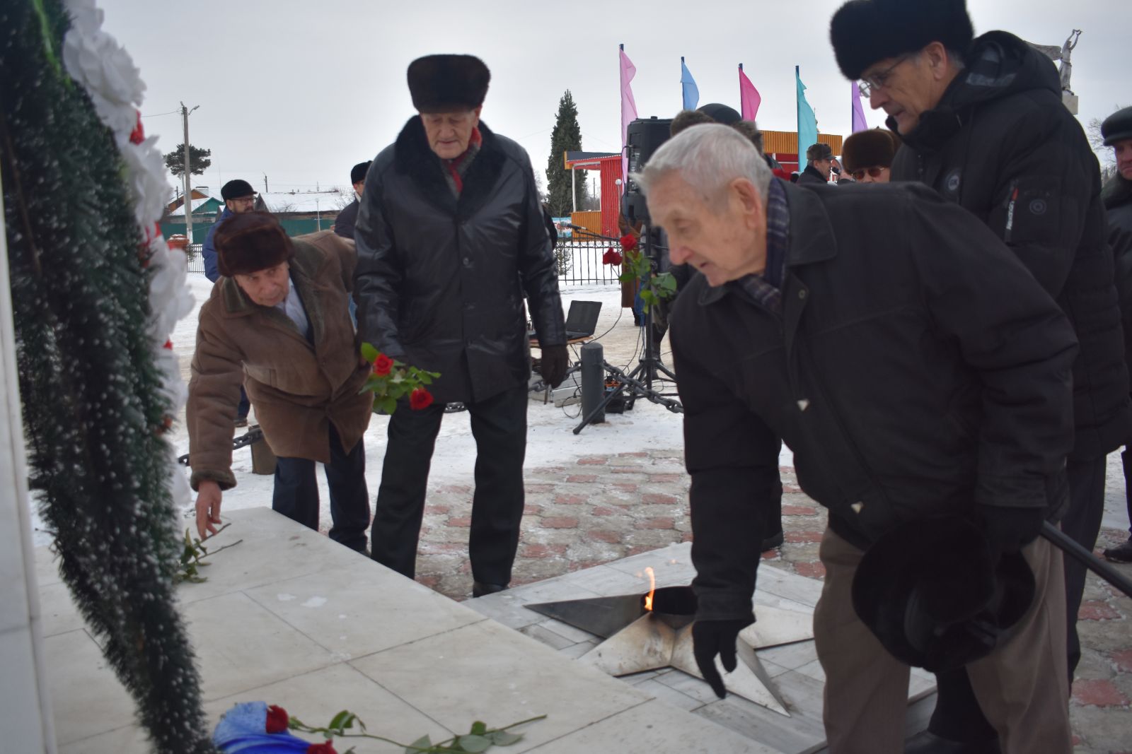 На митинге около Вечного огня участвовали ветераны войны и труда, учащиеся школ и сельские жители. Выступая перед собравшимися, глава района Александр Никошин отметил серьезную работу, которая ведется в школах района по выяснению имен воинов-земляков, сложивших головы на полях боя и считавшихся до недавнего времени пропавшими без вести. Он поблагодарил тех, кто занимается этим важным делом.