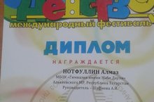 Учащийся 4а класса Нотфуллин Алмаз стал дипломантом XX Международного фестиваля "Детство без границ!" в номинации "Дорога в космос". Подготовила Алмаза классный руководитель Шафиева А.И.