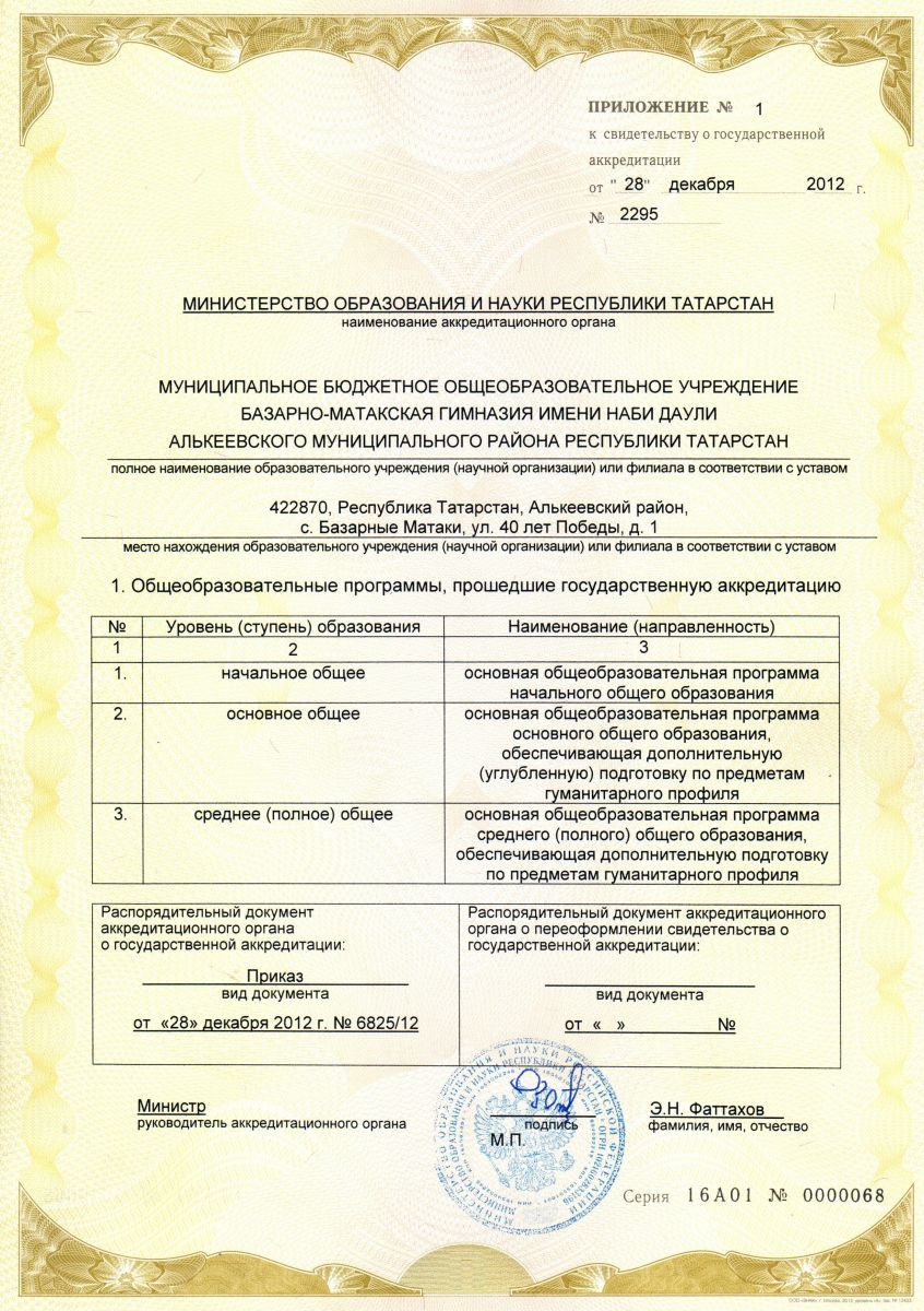 Короткое название: МБОУ Базарно-Матакская гимназия имени Наби Даули