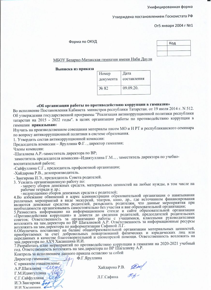 Приказ "Об организации работы по противодействию коррупции в гимназии"
