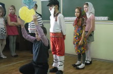 Учащиеся 2 "Б" класса инсценировали сказку "Репка" на английском языке. Представление посмотрели учителя и родители учащихся.