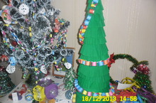 В школе проходит конкурс новогодних игрушек, ёлок и плакатов.