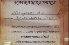 16 февраля в Базарных- Матаках состоялась "IT-олимпиада третьего возраста". Участница нашей школы- учитель биологии Желтухина Валентина Семёновна заняла 2 место. Поздравляем!!!