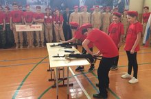 Показательное выступление учащихся 5А класса по сборке и разборке автомата в муниципальном смотре-конкурсе «Лучший юнармейский отряд-2019».