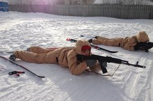 В рамках проведения мероприятий, посвящённых Героям Отечества, в школе провели спортивные соревнования по биатлону среди юнармейцев. Какой же это биатлон, скажете вы. Но проведите подобное состязание и посмотрите в детские глаза. Главная цель этого мероприятия, которое подготовил учитель физ.культуры Платонов С.А., выработать интерес у детей к биатлону, познакомить их с этим видом спорта.По правилам биатлона необходимо было пройти этап на лыжах, выполнить стрельбу лежа по пяти мишеням. Накал страстей был не меньшим, чем у профессиональных спортсменов. -