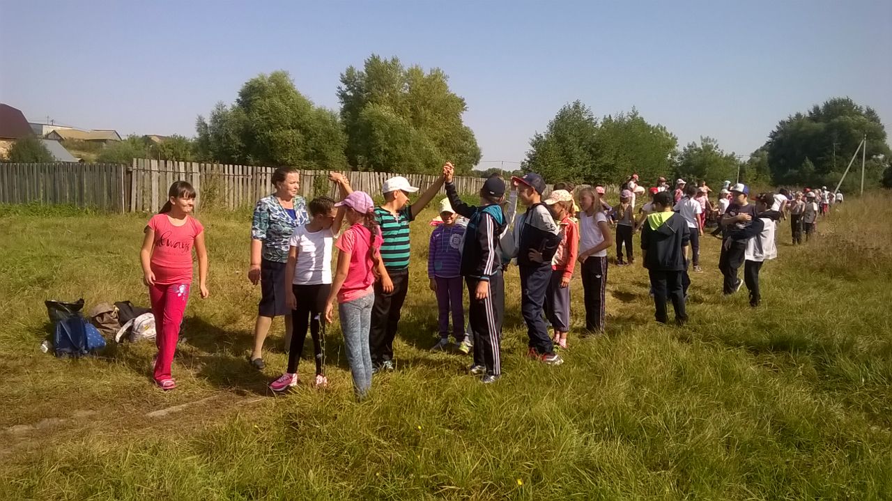 Сегодня мы провели большое спортивное мероприятие "ДЕНЬ ЗДОРОВЬЯ". Активисты ШУС и РДШ начали его с общешкольного флешмоба, после чего все классы разделились на три (начальные классы, 5-8, 9-11 классы) и приняли участие в весёлых спортивных соревнованиях. Начальные классы играли возле речки, 5-8 классы на полянке возле села Биктимирово, а 9-11 классы на стадионе школы.