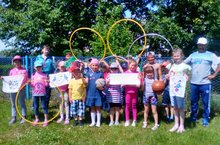В пришкольном лагере: "Весёлые старты" 27.06.2017 В пришкольном лагере сегодня состоялись "Весёлые старты". Три команды соревновались между собой в ловкости, быстроте и умении играть в команде.