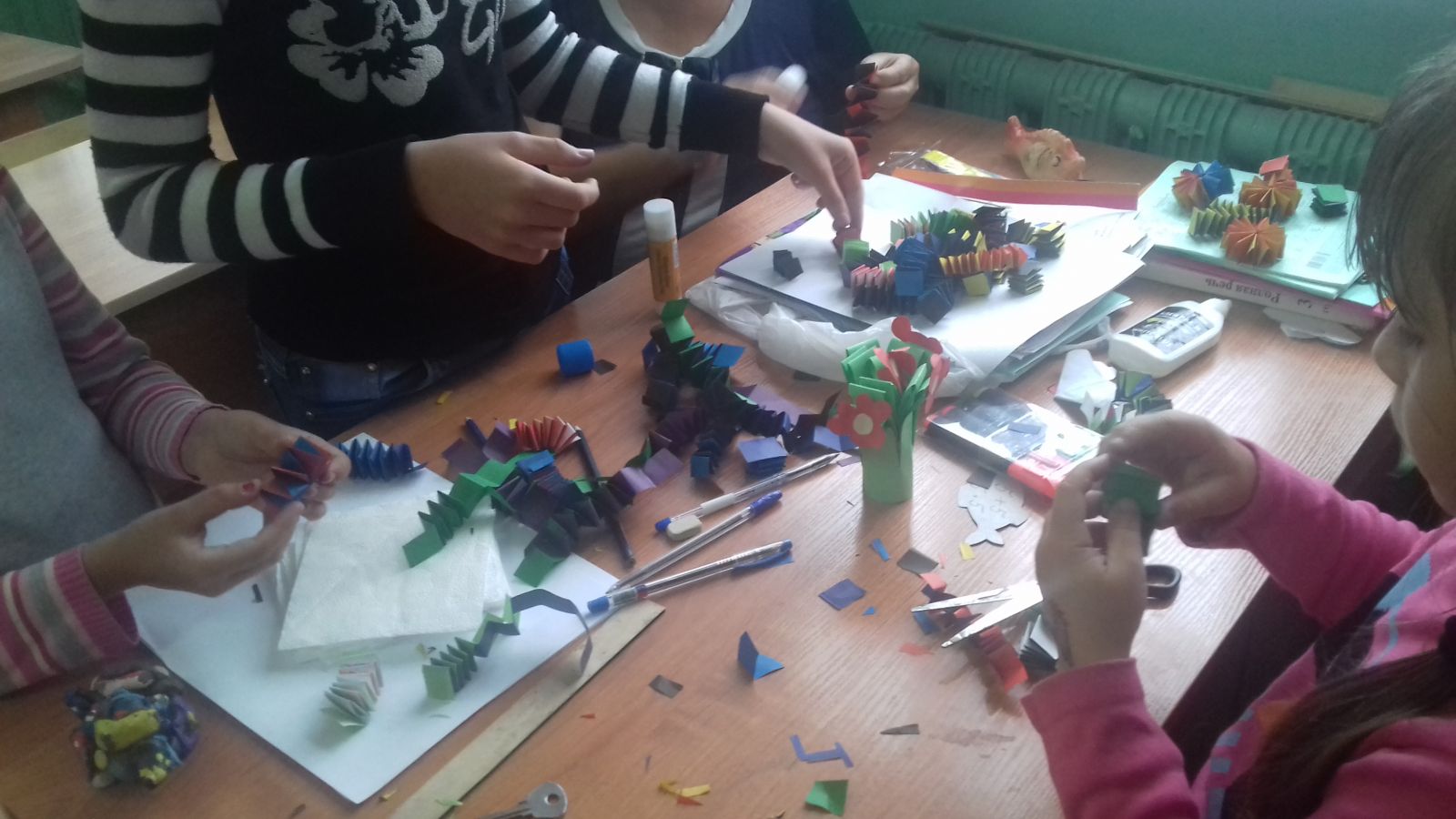Сегодняшний день в пришкольном лагере "Солнышко" можно назвать Днём конструктора. Из бумаги ребята сделали цветы, насекомых; из лего создали домики, машинки; из пластилина-даже целое хозяйство. За столом шла приятная беседа.