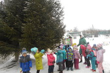 Воспитатель старшей группы с воспитанниками проводит наблюдение за елью. В процессе наблюдения воспитанники расширяют знания о деревьях. Воспитатель учит группировать и классифицировать объекты природы по характерным признакам. Воспитывать бережное отношение к природе.