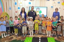 В конце мероприятия инспекторы ГИБДД провели познавательную беседу о светоотрожающих элементов, сигналах светофора, езде на велосипеде. Также вручили воспитанникам карандаши и дидактические-познавательные игры.