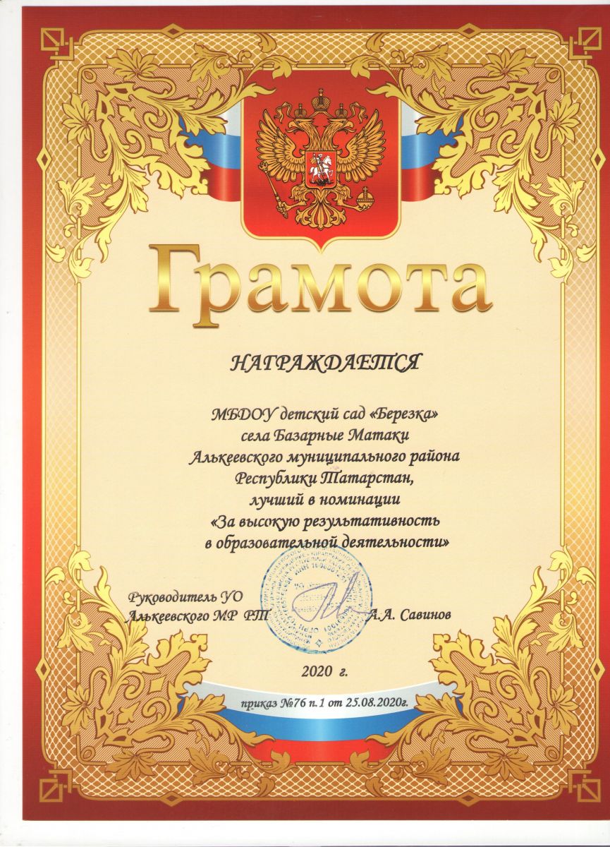 За высокую результативность в образовательной деятельности, 2020г.jpeg