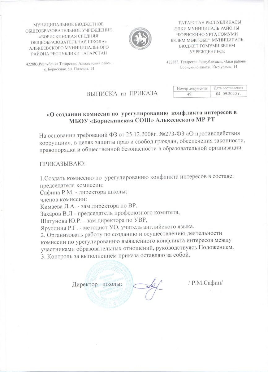 Приказ о создании комиссии по урегулированию конфликта интересов