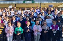 Во время утренней зарядки Совет старшеклассников провел флешмоб "Мы за мир на всей земле", приурочив его Дню солидарности в борьбе с терроризмом.