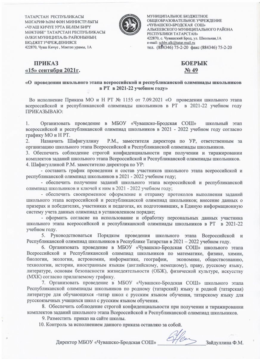 - Начало школьного тура Всероссийских и республиканских олимпиад 20.09.2021