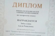 Наша ученица 9 класса Зайдуллина Аделя в этом году приняла участие на Республиканском туре Всероссийской олимпиады по экологии и Республиканской олимпиаде по татарскому языку и заняла на обоих олимпиадах призовые места. Это большое достижение для Адели и для школы. Подготовили призера учителя Зяббарова Г.И. и Исхакова Р.М.