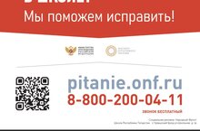 Устраивает ли качество питания в школе? Можно обратиться по бесплатному номеру или навести телефон на куар код на баннер и обратиться в Народный фронт.