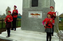 На сельском митинге, посвященном 72-ой годовщине Победы в ВОВ вахту Памяти несли юнармейский школьный отряд.