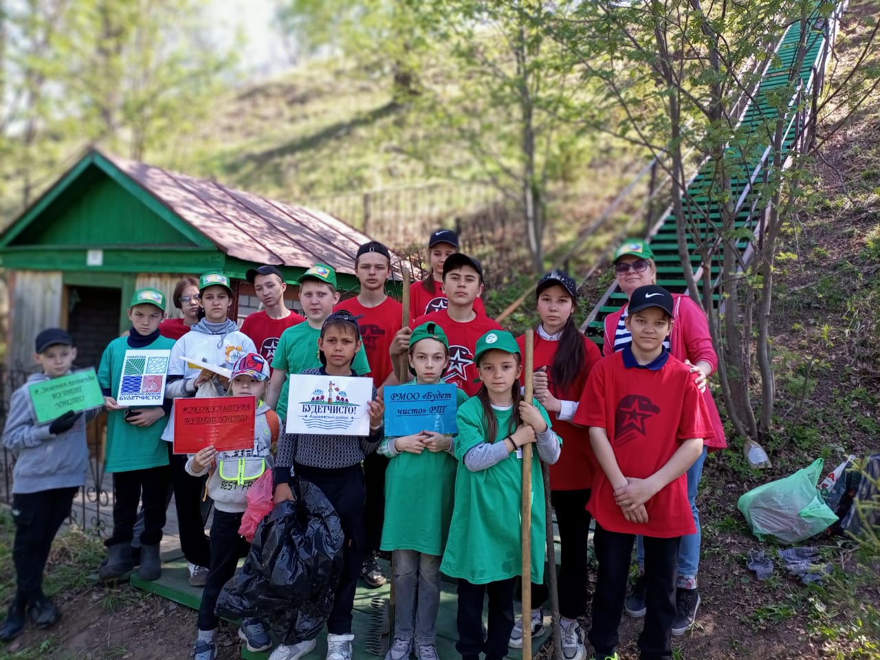 Учащиеся 4 и 7 классов в рамках Всероссийского субботника провели очистку территории Святого родника «Изгелэр эсте»