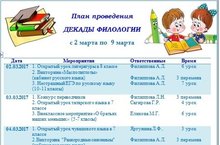 Со 2 по 10 марта в школе будет проходить декада филологии, в которой запланированы открытые уроки, конкурсы и игры! Ждем всех на переменах для участия в викторинах!