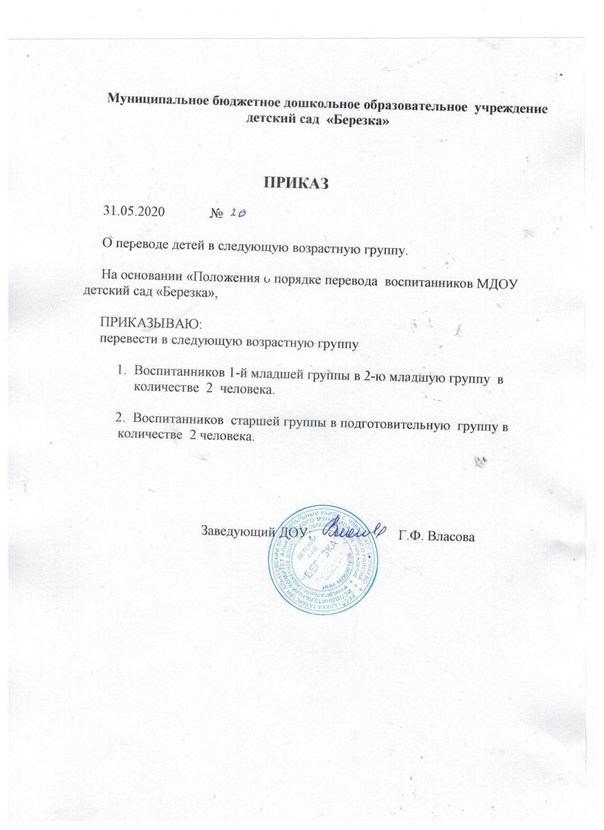 Распорядительные акты о зачисление детей