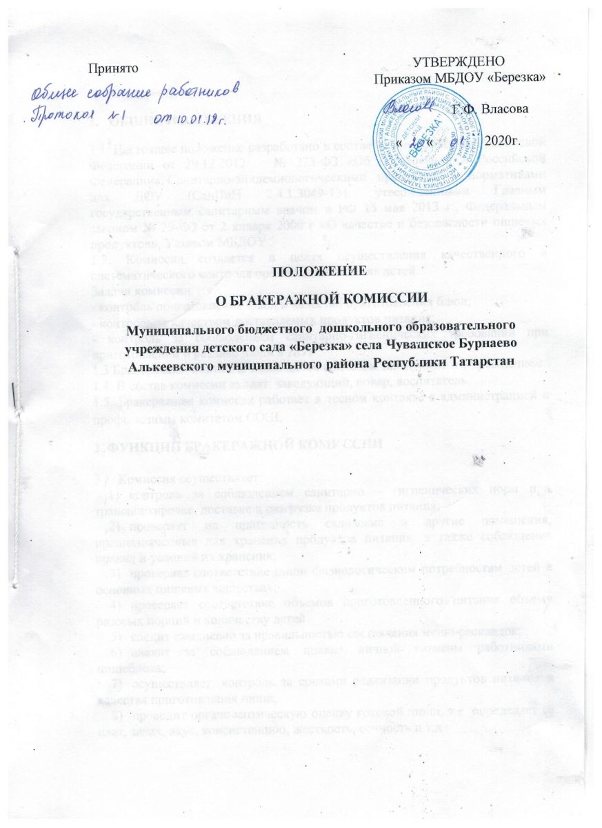Положение о бракеражаном журнале в ДОУ