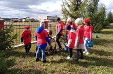 Учащиеся 1-9 классов посадили саженцы в честь погибших в ВОВ . Всего участвовало 29 учащихся, в том числе Юнармейцы .