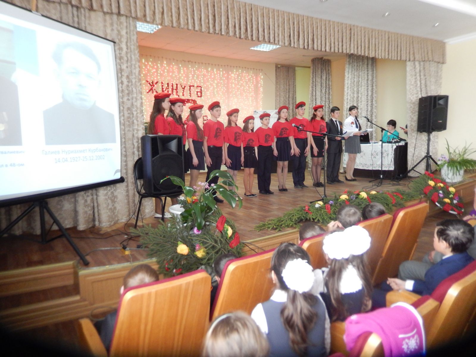 Сегодня прошёл праздник, посвящённый дню Победы. Сначала учащиеся школы участвовали в литературно-музыкальной композиции, затем возложили венки к памятнику неизвестного солдата. Также все учащиеся и жители села участвовали в акции "Бессмертный полк"