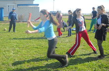 Сегодня в школе прошли весёлые старты. Затем команды "Зенит" и "Рубин" провели интересную игру в футбол.