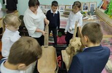 Сегодня во всех классах школы прошли классные часы на тему "Народные художетственные промыслы". Ученики познакомились с народными промыслами. А потом провели экскурсию в школьный музей и ученики увидели веретена и сделанные ручными станками полотенца.