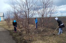 4нче апрель көнне “Чисталык икеайлыгы” акциясендә катнаштык, авыл урамнарында чүп җыйдык.