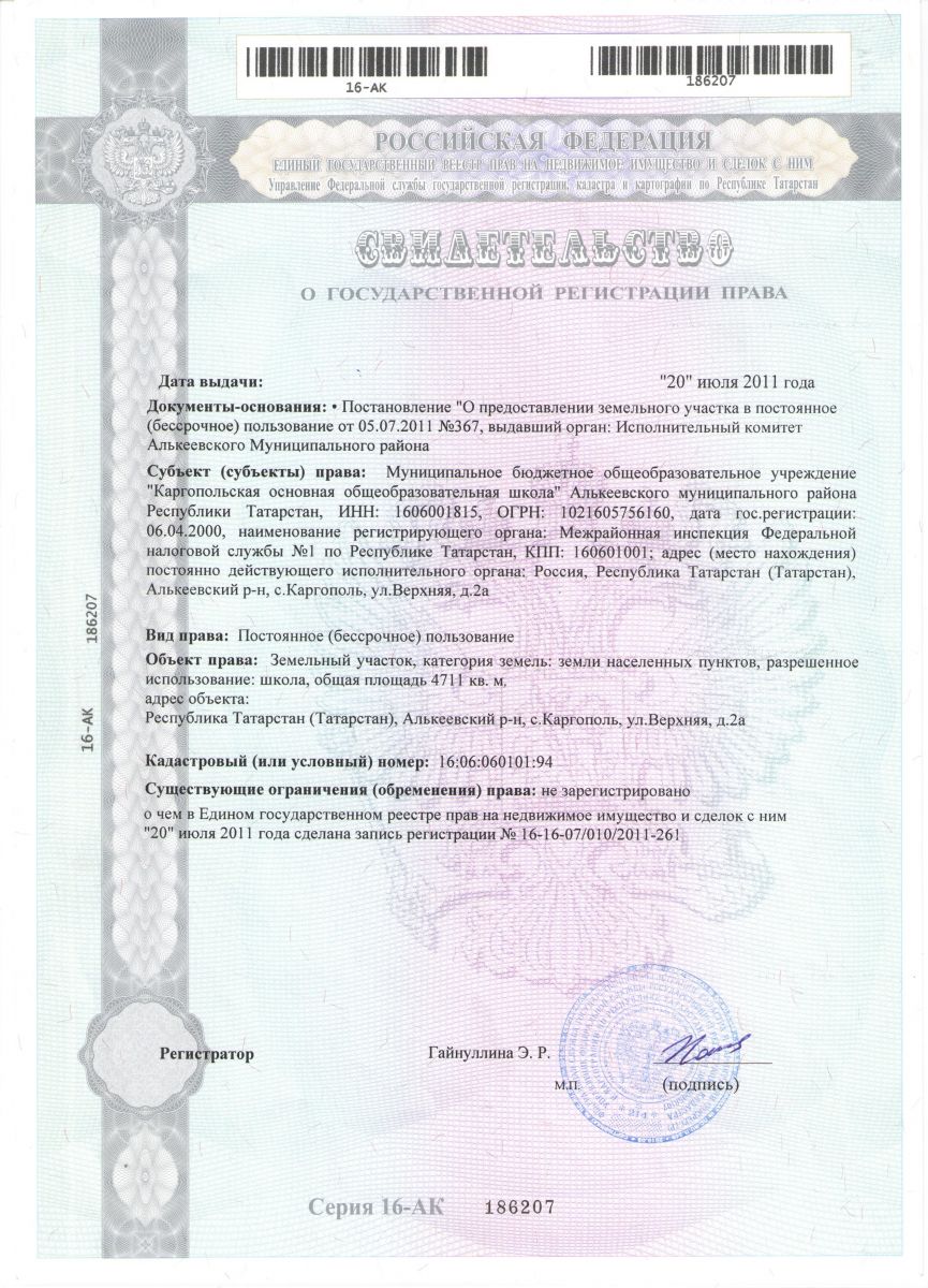 | Короткое название: | МБОУ «Каргопольская ООШ» Алькеевского МР РТ |