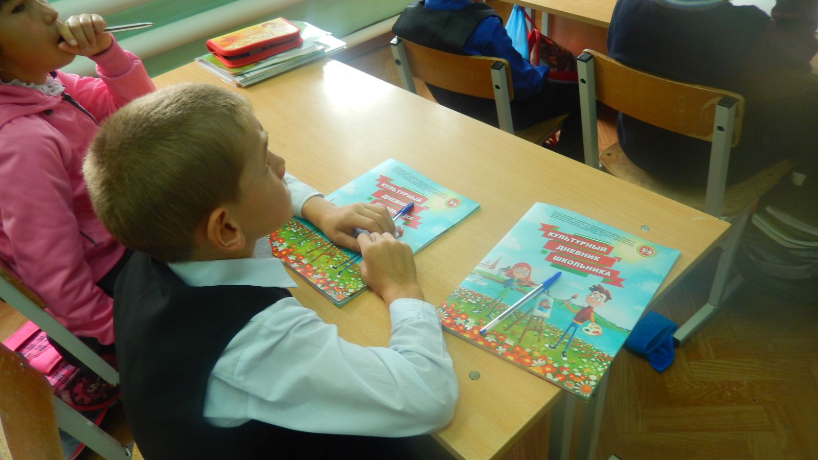 Опубликовано: 16.09.2016Сегодня в школе библиотекарем сельского клуба Каримовой А.А. было проведено мероприятие "Культурный дневник школьника". Ученики начальных классов получили культурные дневники, познакомились с достопримечательностями Республики Татарстан, научились заполнять дневники.