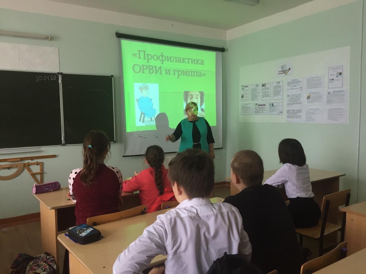 27 февраля в школе были проведены классные часы по профилактике гриппа и ОРВИ с учащимися школы. В ходе беседы с помощью наглядных материалов, презентаций, мультфильмов ребята узнали о строении вируса гриппа, путях его распространения и мерах профилактики. Школьники узнали, что такое «респираторный этикет». Ребята поставили перед собой цель – быть здоровыми, для этого они будут регулярно и тщательно мыть руки с мылом, одеваться по погоде, заниматься спортом и кушать больше овощей и фруктов.