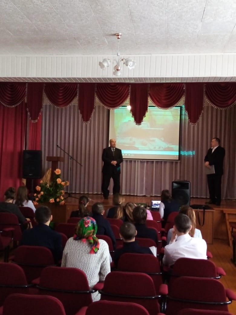 Учитель истории Красильникова З.П. провела с учащимися 8-11 классов урок мужества, где учащиеся размышляли о жизни, о Родине, о чести, достоинстве, об истоках героических подвигов, о неувядающей славе Героев, о том, каким высоким и красивым должно быть предназначение человека на земле.