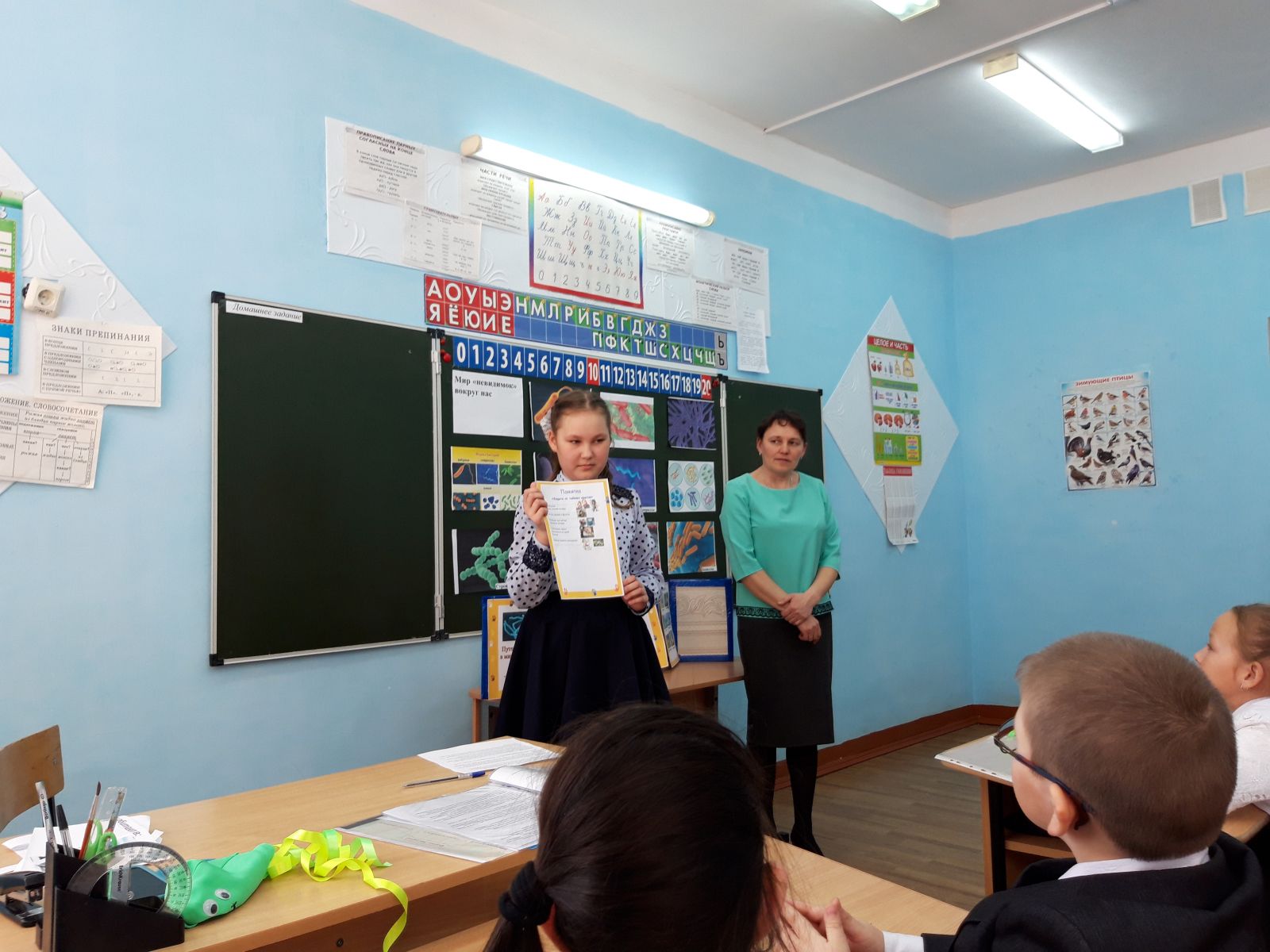 26 февраля в школе прошел семинар начальных классов по теме: "Формирование и развитие познавательных универсальных учебных действий в начальной школе". Урок окружающего мира в 3 классе по теме "Что такое гигиена?" провела Мукусева Л.Ю. Урок литературного чтения в 4 классе по теме "А.с. Пушкин "Сказка о мертвой царевне и о семи богатырях"" провела Яганева Л.Л. Занятия по внеурочной деятельности провели Кашкарова Н.Н. "Мир "невидимок" вокруг нас" и Ермолаева К.В. "Сказка по ПДД "Путешествие Шустрика"". Варламова Е.В. провела мастер - класс по изготовлению цветка из фоамирана.