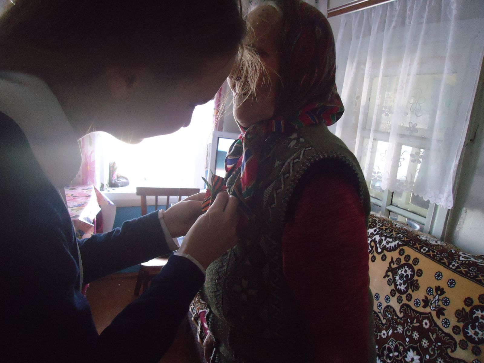 Миллионы людей по всему миру, повязав ленточку, выражают свою благодарность ветеранам войны, труженникам тыла. Активисты ученического совета "Лидер" посетили труженников тыла, выражая гордость за их подвиг, поздравили ветеранов в предверии праздника 72- й годовщины Великой Победы советского народа в Великой Отечественной войне.