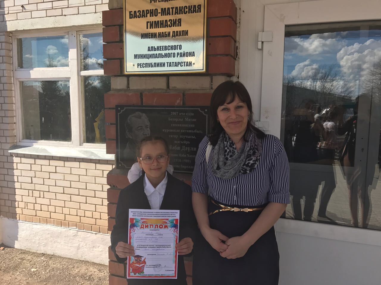 В целях развития интеллектуального творчества учащихся, привлечения их к исследовательской деятельности 26 апреля на базе МБОУ "Базарно-Матакская гимназия имени Наби Даули" прошла IV Открытая научно- исследовательская конференция учащихся имени Наби Даули. Учащиеся нашей приняли активное участие в данном мероприятии и получили следующие результаты: Романова М., ученица 3 класса, заняла 1 место в номинации "Юные исследователи" (руководитель Мукусева Л.Ю.); Кашкарова Л., ученица 4 класса, заняла 1 место в номинации "Юные исследователи" (руководитель- Закирова Р.М.); Чубукова У. и Кашкаров Д., учащиеся 7 класса, заняли 2 место в номинации "Истоия, обществознание, краеведение" (руководитель- Филиппова Ю.Н.). Поздравляем и желаем дальнейших успехов!!!