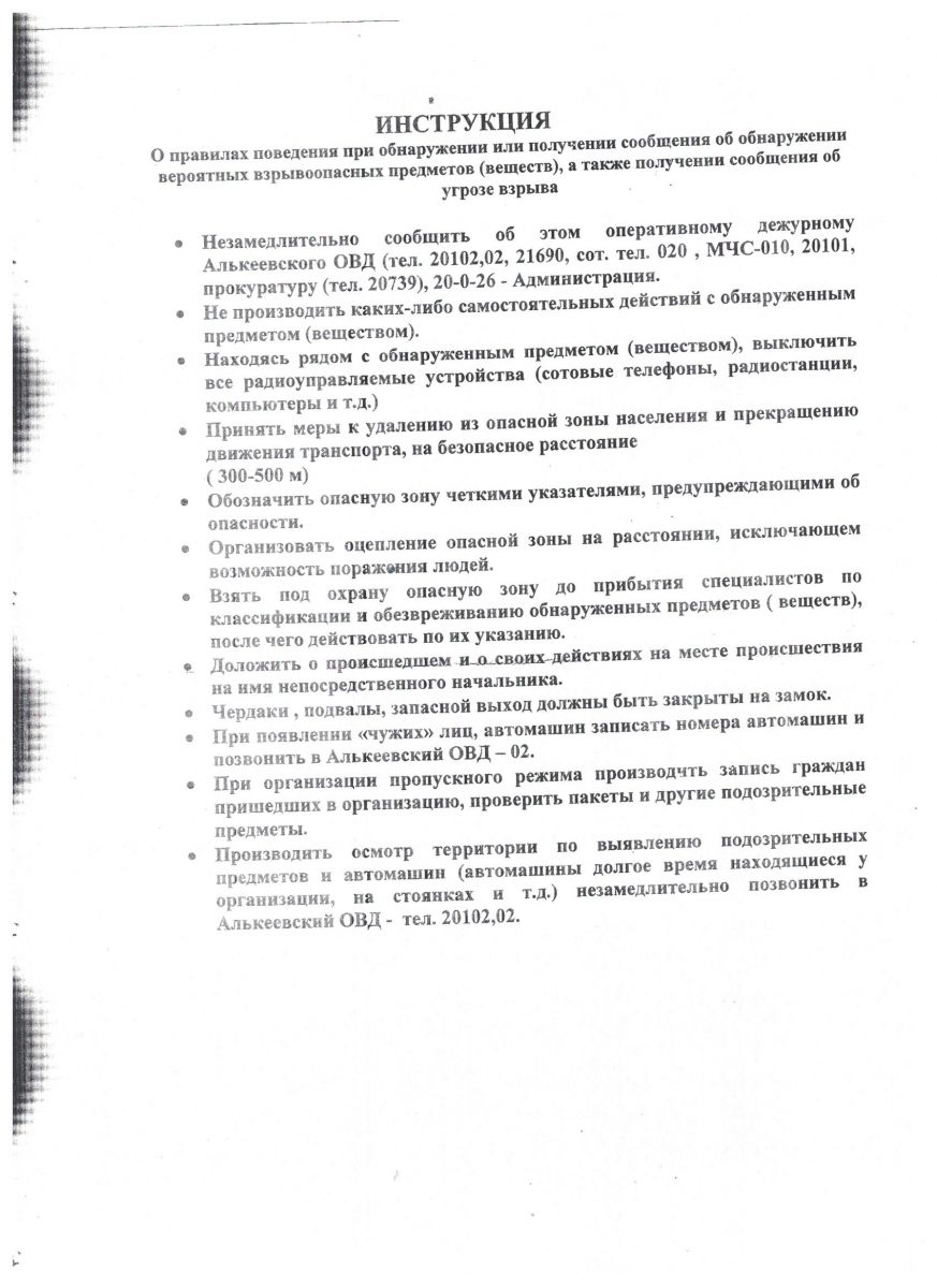 Инструкция о правилах поведения при обнаружении взрывоопасных предметов