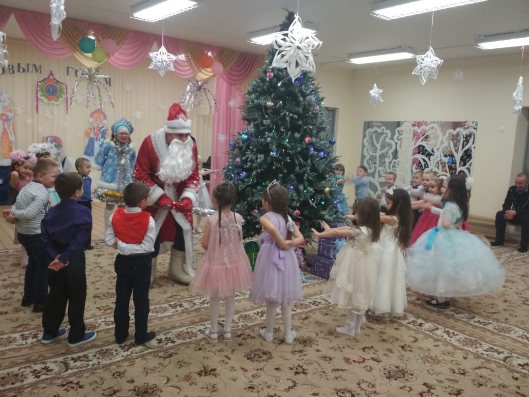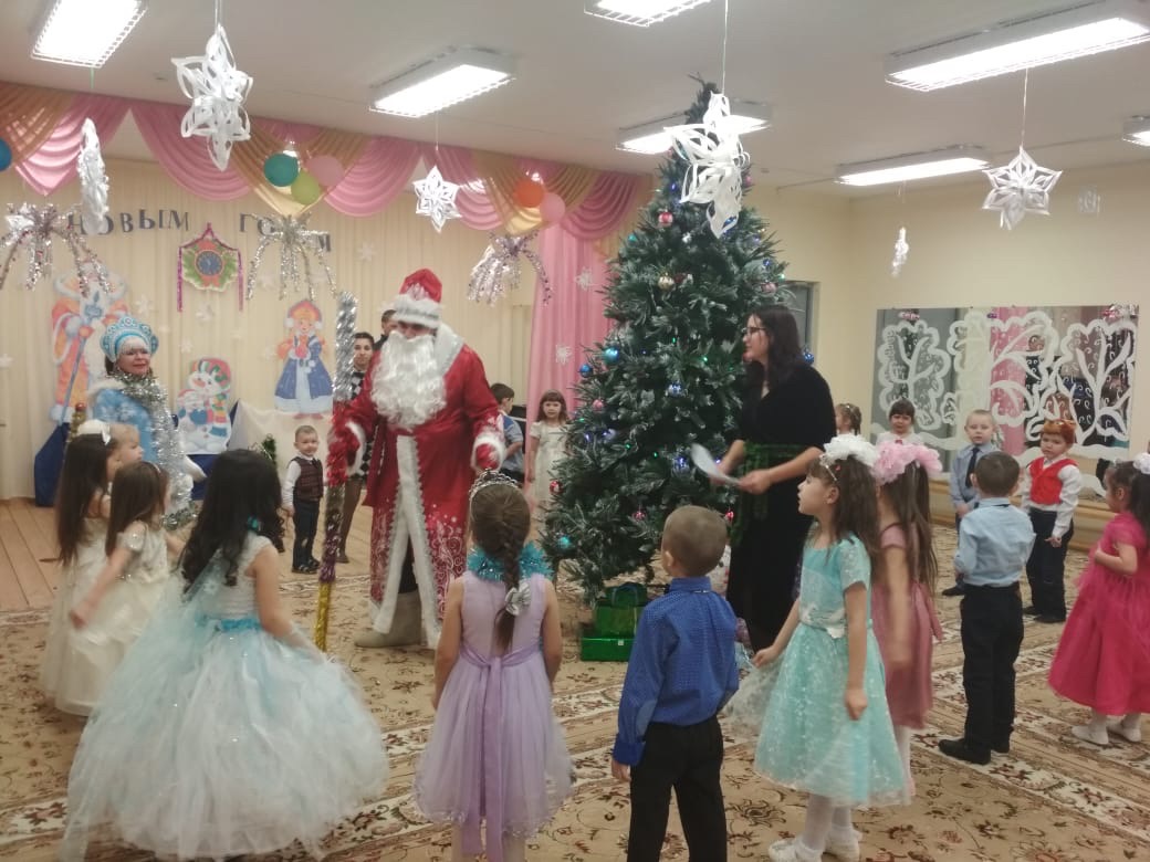 Опубликовано: 25.12.2019Самый любимый праздник, как взрослых, так и детей, конечно же, Новый год. С 23 по 25 декабря в нашем детском саду прошли Новогодние утренники. Дети погрузились в мир сказки, неожиданных приключений, песен, хороводов, танцев, игр, конкурсов и сюрпризов. Появление Деда Мороза и Снегурочки вызвало огромную радость и восторг в душе каждого ребенка. А сказочные герои не только повеселили детей, но и приглашенных гостей. Радостной и незабываемой для детей была встреча со сверкающей огнями елочкой. Никто не остался равнодушен. Море радости и эмоций вызвали подарки, врученные детям из рук самого Дедушки Мороза!