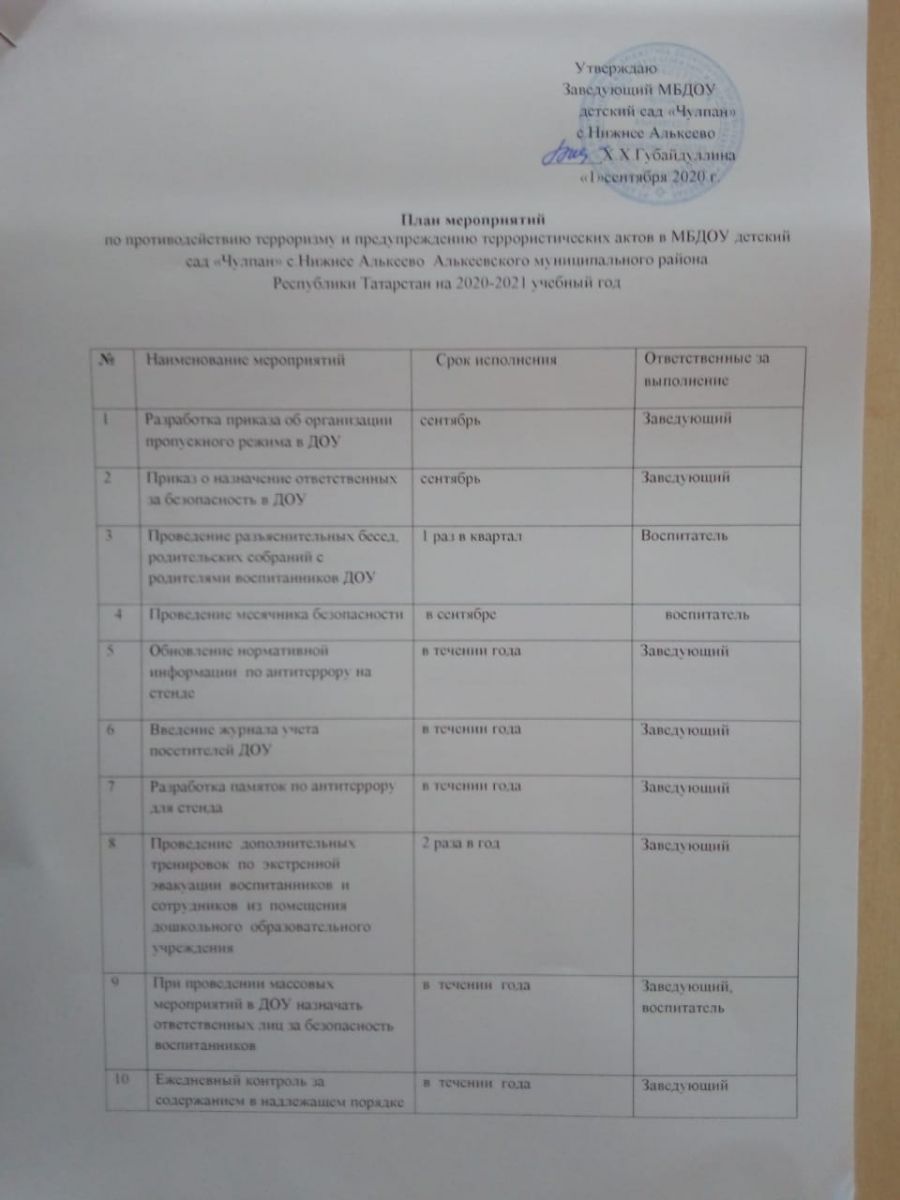 МБДОУ детский сад «Чулпан» села Нижнее Алькеево Алькеевского муниципального района Республики Татарстан»
